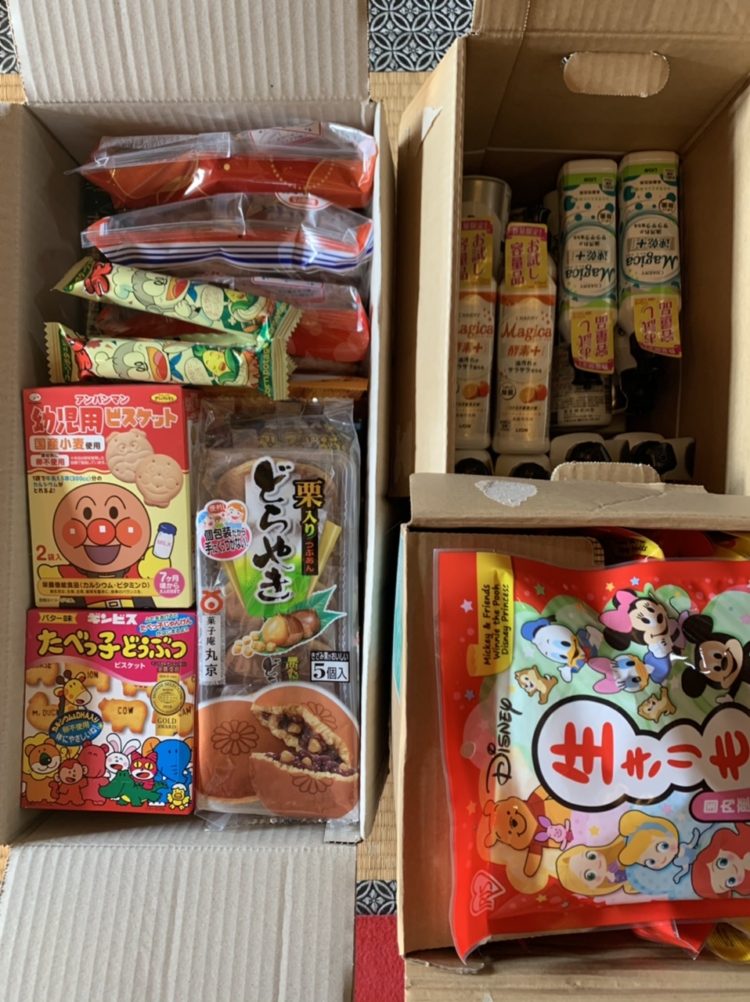 お菓子や果物、食品や日用品をお届けしています。また、文房具等も集めております。詳しくは『おてらおやつクラブ』をご確認ください。